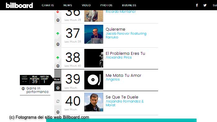 La agrupación cubana Ángeles ingresó en el listado Latin Pop Songs de Billboard con fecha oficial 1ro. de julio de 2017 con el sencillo “Me mata tu amor”.