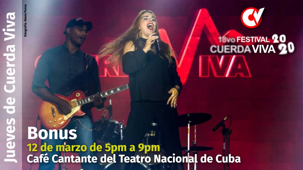No se detiene el nuevo espacio de #CuerdaViva en el Café Cantante del Teatro Nacional de Cuba y para este jueves 12 de marzo la propuesta es la banda Bonus, una de las mayores sorpresas de la música cubana de los últimos cuatro años.