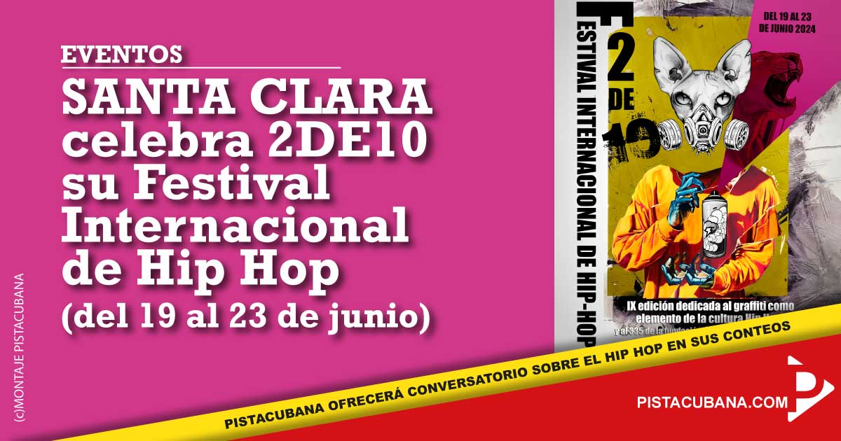 Desde este miércoles 19 de junio y hasta el domingo 23, Santa Clara celebra el Festival Internacional de Hip Hop “2 de 10”, evento multicultural en esta ocasión dedicado al graffiti y a los 335 años de la fundación de la ciudad de Santa Clara, capital de la provincia Villa Clara.