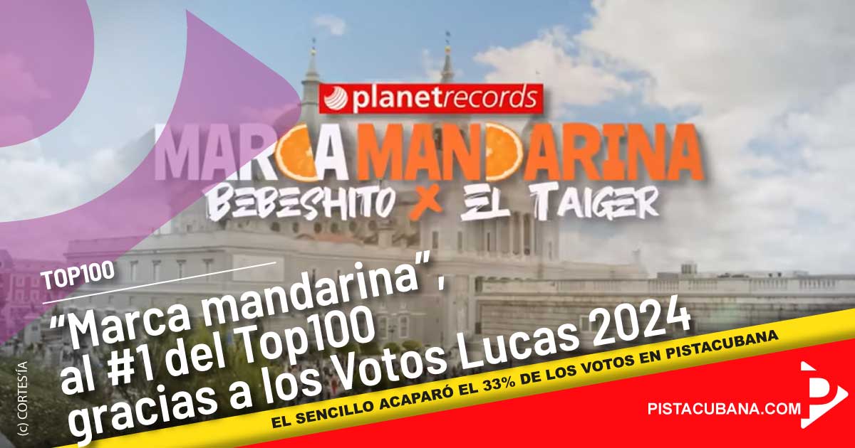 "Marca mandarina" por Bebeshito y El Taiger es el nuevo #1 en el listado Top100 de #Pistacubana en su 24 semana de conteo, impulsado por las votaciones dentro de #Pistacubana para el Video Más Popular. Para Bebeshito es su primer #1, en tanto El Taiger logra el segundo. Para Ernesto Losa, en calidad de productor musical, es el primero.